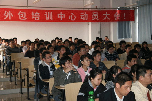 2007年10月19日上午,交大博通公司与我院在学院A400大教室召开了有100余名学生参加的软件服务外包培训动员大会。