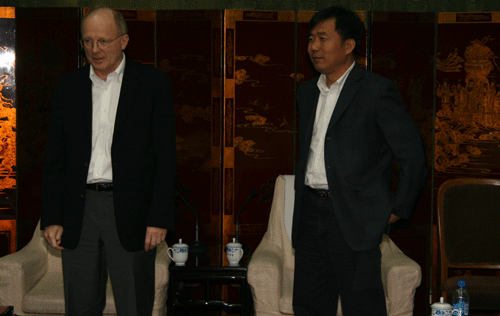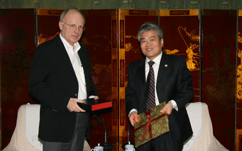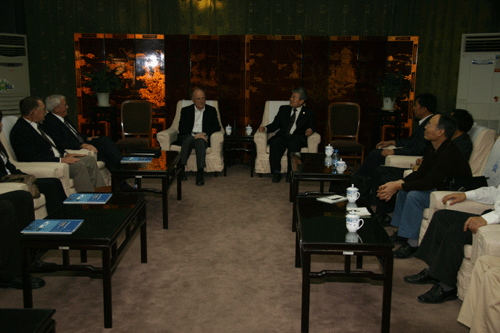 2007年9月21日下午,加拿大纽纷兰纪念大学校长Axel Meisen博士、商务管理学院院长Gary Gorman博士、商务管理学院国际项目部主任Michael Bums教授、国际项目部助理主任Ellen Zhang小姐、项目助理Kirk Barlow先生来我院访问。我院常务副院长陈光德教授以及应用经济系、管理系、教学服务中心、行政服务中心的领导在中加合作项目办公室接待了纽纷兰纪念大学客人,宾主双方进行了亲切友好的会谈。