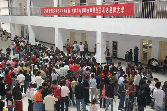 9月11日,我院2007级本科新生注册报到工作正式拉开序幕。来自全国10余个省市的新生,怀着对美好理想的追求和对未来新生活的向往,从五湖四海赶赴位于西安经济开发区草滩生态产业园的我院新校区。整个校园彩旗招展,人头攒动,人声鼎沸,到处可见的迎新标语把新校区点缀得格外亮丽,校园内一派生机勃勃景象。