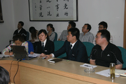 韩超副院长为学院学生工作论坛致开幕辞,她希望全体学生工作人员能通过研讨的形式,不断提高理论水平和业务能力,与学院的发展目标和定位相适应。学生教育及后勤服务中心马兆平主任从和谐校园文化建设的内涵,目前存在的问题及对策等方面作了发言;张学堂副主任从校园文化与品牌建设的思路、指导思想、组织原则、建设目标以及建设措施等方面谈了学院的校园文化建设规划;学生会主席王晶作了学生会组织架构的创新与改革的发言。与会人员都为学院的校园文化建设工作献计献策,有的从教风、学风、作风谈起;有的从和谐人际关系谈起;有的还从专项工作为切入点谈起;发言积极,现场气氛热烈,对进一步理清学院校园文化建设思路起到积极的促进和催化作用。
