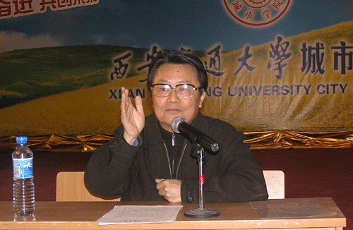 此次活动主要分为5个部分,首先,学院百草园文学社王蓓同学宣读了《中华诗网》编委发来的贺信。其次,由韩超老师致开幕词,代表学院向肖云儒以及各兄弟院校文学社的来访表示热烈地的欢迎和感谢。再次,由本次活动的执行主席、学院百草园文学社社长姚飞同学对本次活动进行介绍,这是一次集人文、娱乐、学术于一体,历时一个月,为构建和谐社会的大型交流活动。开幕式结束后,肖云儒教授为我们做了精彩的题为“西部热,当代潮”的报告,肖云儒教授认为:文学是青春的专利,是对艺术化生活的追求,我们这个时代是对文学最有激情的时代,文学其实是青春的别称,人到中老年就没有了激情,留下的只有文学的回忆,而文学则成了人生的一种奢求。在解说到西部文化与当代文化思潮的关系时,肖云儒教授以一种意态坐标看西部,认为有更多感知与西部接轨的潜在文化,他总结了西部4种文化现象即内西部的农业文明现象;外西部的游牧文化现象,准西部现象,泛文化现象,即文化不能称大,文化无大小只有强弱,只有质量。而山之根,河之源既是一个地理概念,又是一个文化概念。基本上没有一个文学作品可以离开山水,因为山水的本质也是一种生命。肖云儒教授还为我们讲述了西部文学三个时期在中国文学的地位,在古典文学阶段,西部文化是中国文化的主流:在五四运动至文革前,西部文化从宏观的自在慢慢移向微观上有意识的文化;到第三个阶段,已经成为自觉地审美把握阶段。他从诗歌,小说,西部电影,西北风音乐,西部美术等多方面阐述了西部现代的文化潜质,并讲到了人生生命在动态中如何升值。
