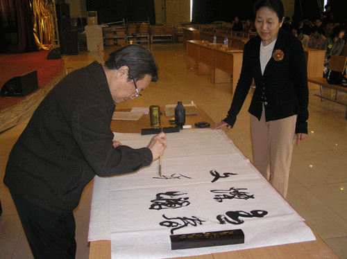 最后,肖云儒教授在同学们热烈的掌声中为此次活动题词“青春灿烂,文采飞扬”,并与同学们合影留念。此次文学交流活动在学院百草园文学社等9个兄弟院校社团的共同努力下举办,不仅有助于加强各院校之间的交流合作,更让我们广大文学爱好者有了与文学大师交流的机会,让我们更清楚地认识和了解了西部文化并坚定了为西部贡献微薄之力的信念。