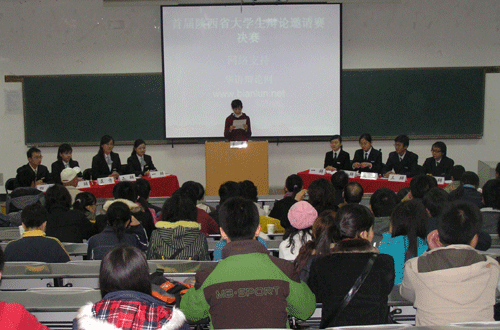 本场比赛设在西北大学现代学院,由西北大学现代学院副院长王翼成教授担任本场比赛的点评。学院辩论队为本场比赛的反方,所持的观点是“相处容易相爱难”。辩论中,双方精辟的语言、精彩的演绎不时让现场评委和观众掌声雷动。最后学院辩论队一辩王晶同学和西安石油大学代表队的四辩被评为最佳辩手,学院辩论队以强劲的优势赢得了比赛的胜利。