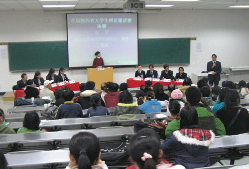 11月29日,首届陕西省高校辩论邀请赛第一场1/4决赛在西北大学现代学院进行,参赛双方分别是西安交通大学城市学院代表队和西安石油大学代表队。比赛中双方就“相爱与相处孰难孰易”而辩论反驳,经过五个阶段激烈、风趣的辩论,最终西安交通大学城市学院代表队率先成功晋级冠亚军决赛。