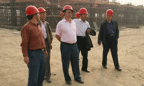 2006年10月12日,城市学院董事会雷厉董事长、西安交大教育集团冯晓光总裁、城市学院陈光德副院长等在张敬朝副院长的陪同下到校园建设工地检查工作。