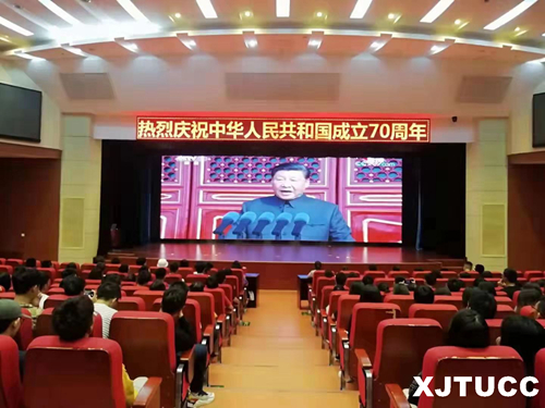 10月1日,庆祝中华人民共和国成立70周年大会在北京天安门广场隆重举行。西安交通大学城市学院师生在学院会议室、报告厅、宿舍、家中等处,通过电视、网络实时直播、校园广播等形式收看收听庆祝大会盛况,共同回顾新中国成立70周年来走过的伟大历程,见证激动人心的历史时刻,聆听习近平总书记的重要讲话,畅谈观看大会盛况的感想。