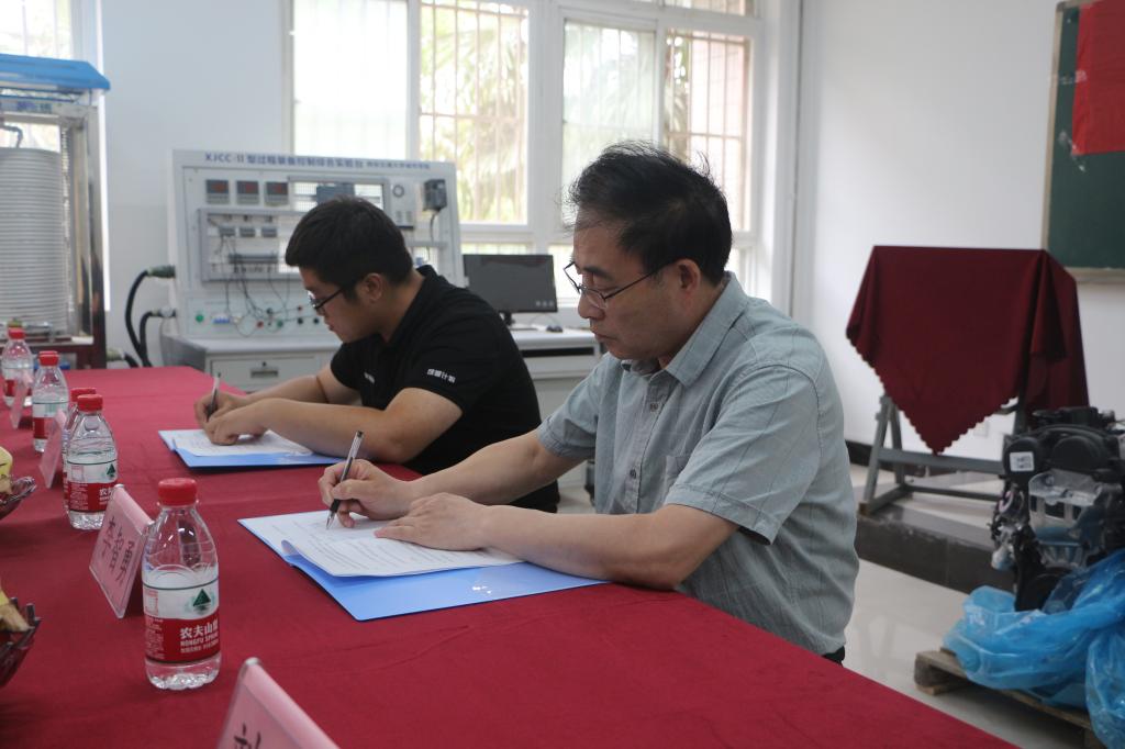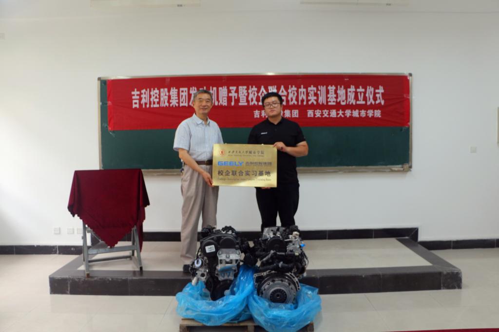 在与会人员的共同见证下,机械工程系主任刘吉轩与李智勇经理签署了建立校企联合实训实验室合作协议,教学中心主任陈晓南和李智勇经理共同为西安交通大学城市学院与吉利控股集团共建的联合实训实验室揭牌。