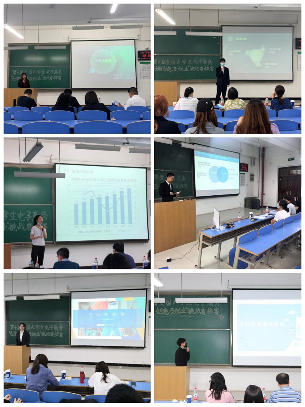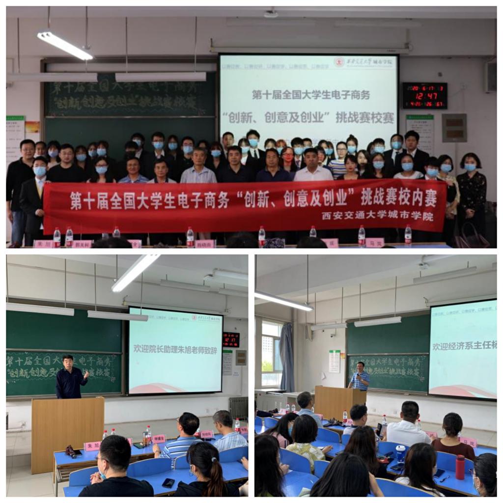 为了激发大学生的学习兴趣与潜能,培养大学生创新意识、创意思维、创业能力、个性化发展和团队合作精神,落实教育部、财政部《关于深化本科教育教学改革,全面提高人才培养质量》的文件精神,推进“双一流”建设,使“理念新起来、学生忙起来、教师强起来、效果实起来”,第十届全国大学生电子商务“创新、创意及创业”挑战赛(以下简称“三创赛”)校级赛于6月17日在教二213-312举行。本次竞赛由教学服务中心主办、经济系承办。院长助理朱旭、教学服务中心主任陈晓南、学生服务中心主任张学堂、经济系主任杨健全、管理系副主任郭关科、中兴学院企业讲师张成、传播系教师马岚以及经济系全体教师和辅导员参加比赛,本次大赛由张欣怡同学主持。