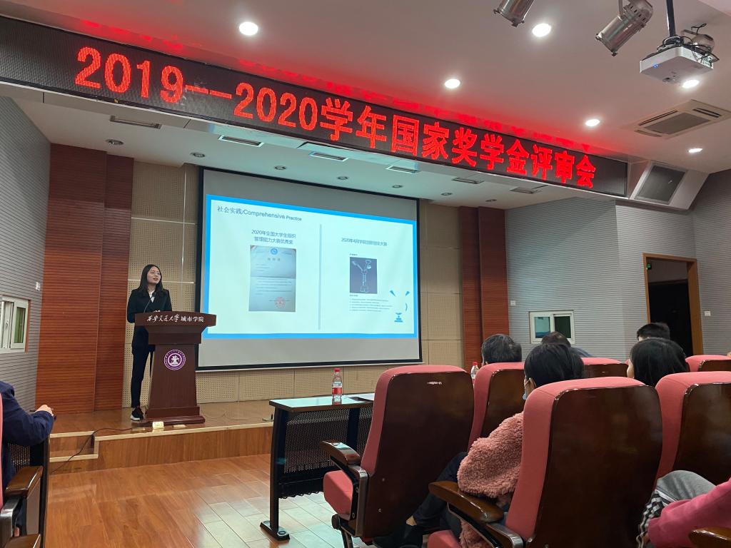 随后,经各系系内答辩后推选出的需要参加学院答辩评审的10名候选人从个人上学年学习成绩、创新能力、社会实践及综合素质等四个方面分别进行了答辩汇报。评审专家认真听取了每位候选人的汇报并本着公平、公正、客观的原则对每位答辩同学进行严格评审;同时评审专家还对相关系系内确定的5名正式候选人进行了审查。最终确定推荐于珍妮等13名学生作为我院国家奖学金候选人建议名单进行公示并上报教育厅会审。