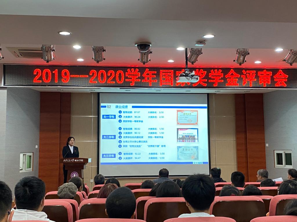 10月14日下午,我院在F100多功能报告厅组织召开了2019-2020学年国家奖学金答辩评审会。学院党委书记张爱萍、副院长朱旭、教学服务中心主任陈晓南、学生服务中心主任张学堂、科技服务中心主任王小青莅临指导并作为评审专家对各系推荐的国家奖学金候选人进行了综合评审。各系学生工作主管、部分辅导员及160余名学生进行了现场观摩。评审会由学生服务中心副主任辛红伟主持。