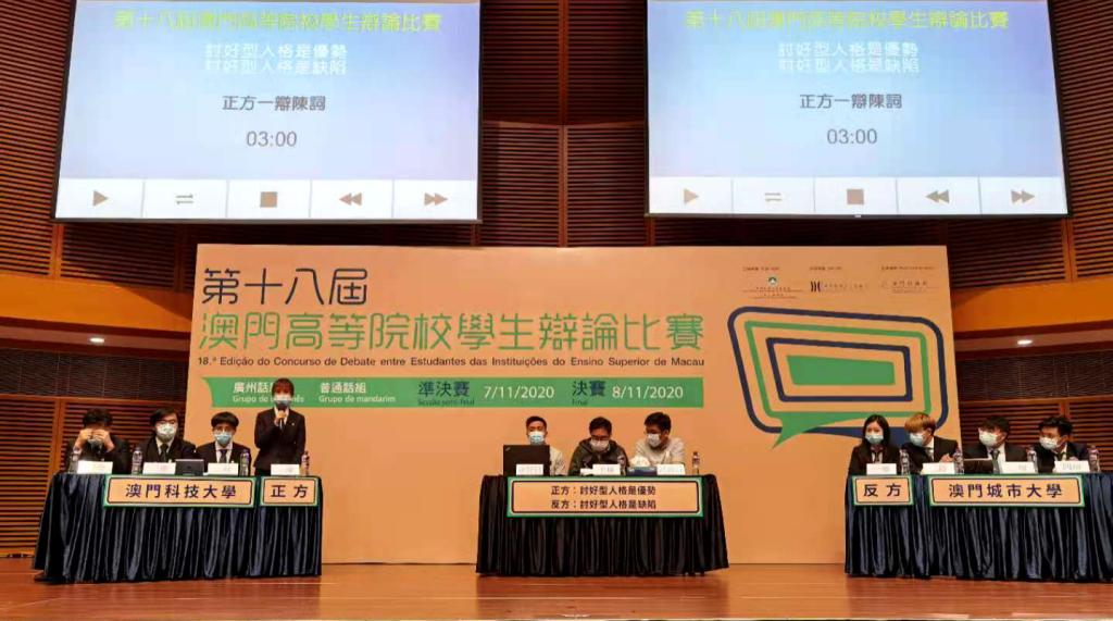 本次比赛在澳门科技馆礼堂进行,由澳门特别行政区高等教育局主办,澳门演辩文化协会承办。主办方旨在通过辩论活动培养学生的批判性思维、语言表达及应变能力,加强院校之间的学术交流。据悉,该活动已连续举办了十八届,在澳门高等院校中具有广泛影响力。赛事分为广东话组和普通话组。经过两天的激烈角逐,澳门大学摘得桂冠。