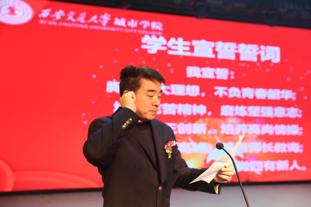 随后,在朱旭副院长的带领下,全体与会学生高举右拳,以青春的名义宣誓要开启奋斗人生,感恩师长教诲,牢记时代使命,争做四有新人。