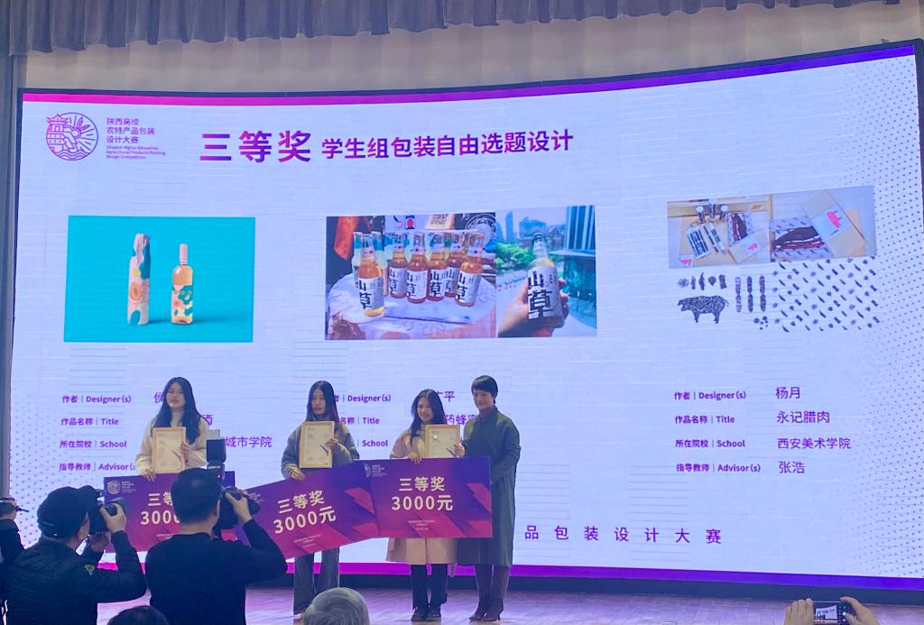近日,2020年陕西高校农特产品包装设计大赛落下帷幕。西安交通大学城市学院艺术系2017级视觉传达设计专业学生侯文璞荣获自由命题组三等奖,陈奕如、徐上、杜少涵获得优秀奖,视觉传达设计专业教师吴兹古力获优秀指导教师奖,朱丹老师获得教师组作品优秀奖。