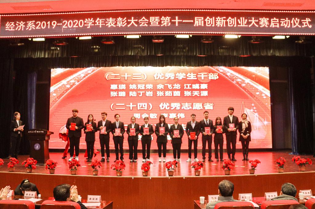 为表彰我系师生2019-2020学年在各方面取得的优异成绩,充分发挥榜样的引领示范作用,西安交通大学城市学院经济系于12月16日下午在教二报告厅举办了2019—2020学年表彰大会暨第十一届创新创业大赛启动仪式。莅临本次大会的嘉宾有西安交通大学城市学院副院长朱旭、副院长张敬朝、学院纪委书记兼党政服务中心主任朱普社、人事服务中心主任姬志国、科技服务中心主任王小青、高教研究与教师发展中心副主任史冬梅、学生服务中心副主任马瑞。经济系主任张文科、副主任杨建全及经济系全体老师参加了本次活动,大会由陆丁岩、张欣怡主持。