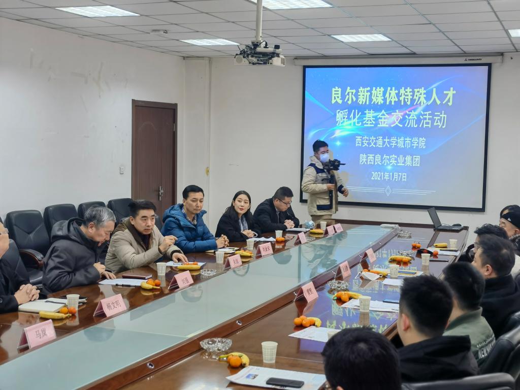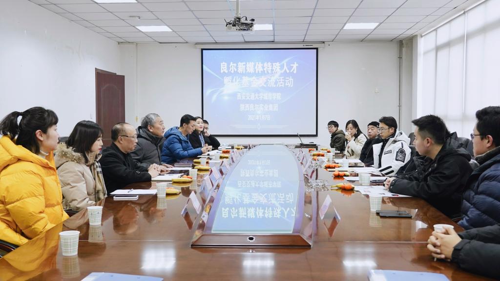 为遵循“产、学、研”基本规律和发展方向,进一步落实新媒体特殊人才培养计划。1月7日下午,西安交通大学城市学院传播系与陕西良尔实业集团(以下简称良尔集团)就良尔新媒体特殊人才孵化基金项目召开交流座谈会。良尔集团董事长魏思捷、CEO黄挺、CFO王隆盛等相关负责人与我院副院长朱旭,科技服务中心副主任刘金安,传播系常务副主任刘强,主任助理王玢,系办公室主任孙晓斌,教师杨文明、马岚、孙菡忆、杨屹琨参加此次活动。