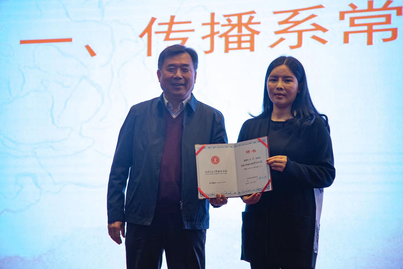 3月25日下午,西安交通大学城市学院传播系于教二报告厅举办王洁兼职教授聘任仪式暨人文大视野系列讲座。学院院长陈光德、人民日报陕西分社社长王乐文、陕西省青年作协副主席王洁、传播系常务副主任刘强、传播系全体教师及网媒专业2019级与2020级全体学生参会。本次会议由刘强常务副主任主持。