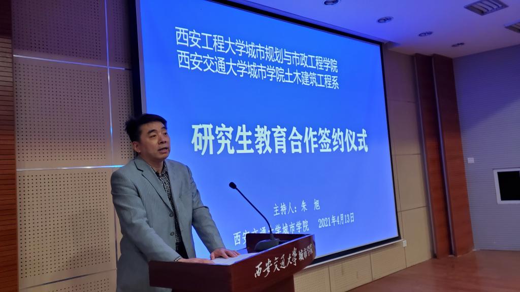4月13日下午,西安交通大学城市学院与西安工程大学在F100举行了研究生教育合作签约仪式,出席会议的有西安工程大学城市规划与市政工程学院党委书记兼副院长杨友谊、党委副书记袁群、副院长强天伟、建筑环境与能源应用工程系主任孙铁柱、副教授刘洋,西安交通大学城市学院党委书记张爱萍、学生服务中心主任张学堂、科技服务中心主任王小青、计算机系主任缪相林、管理系常务副主任郭关科、艺术系副主任张春新、机械系主任助理王国平、电信系主任助理张建、护理系主任助理王相茹、土建系主任廖红建以及部分师生代表,会议由副院长朱旭主持。