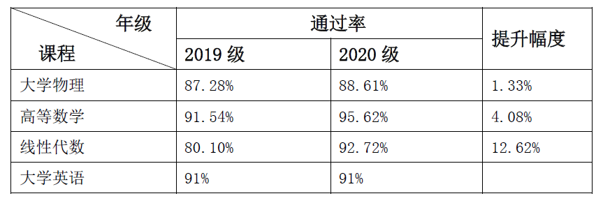 机械工程系成立了系领导、班主任、任课教师、辅导员、青年帮扶教师、学生干部、朋辈大使“六位一体”的学风建设工作组。其中,任课教师严抓课堂教学、作业批阅、课后答疑三个关键环节,发现问题及时沟通,为人师表,严于律己,以优良的“教风”引领优良学风的形成;辅导员主动了解学生的课堂表现,有针对性地指导学生的课余学习,运用谈心谈话、走访宿舍等形式关注学业困难学生;班主任定期召开班会,开展学业规划、专业认知教育,建立班级学业台账,关注学业困难学生,指导学生切实取得“三证”;青年帮扶教师进行早晚自习学习监管与组织,对学困生等进行定期学习帮扶;学生干部发挥模范带头作用,加强纪律监督,主动收集反馈学生学习方面的需求、建议、意见,朋辈大使积极落实考前学业指导与带动帮扶。通过密切的联系互动,有效的沟通交流,四轮驱动,六位一体,形成合力,在学生上课、早晚自习出勤、课堂纪律及学习状态、大面积公共基础课成绩、学业困难学生的帮扶、学业预警学生的管控方面都取得了较为明显的进步。举例说明,英语四级通过率,对比2020年9月和12月两次,以2017、2018级两个年级作为分析,2017级通过率12月比9月提高了8.96%,2018级通过率12月比9月提高了6.26%,颇具成效。大面积公共基础课通过率效果显著,如下图展示: