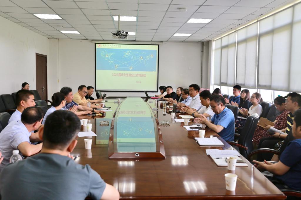 为全力做好2021年毕业生就业工作,6月8日上午,西安交通大学城市学院召开毕业生就业工作推进会。学院院长陈光德、院党委书记张爱萍、学生中心主任张学堂、各系主任、各系学生工作负责人参加会议。会议由张爱萍书记主持。