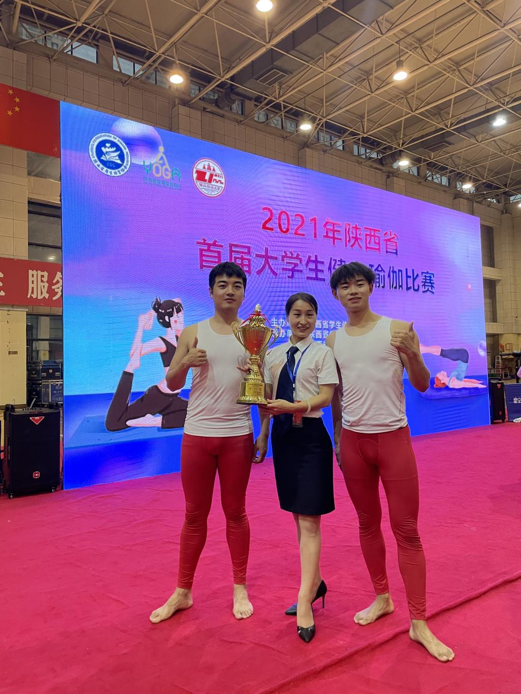 2021年6月19日至20日“陕西省首届大学生健身瑜伽比赛”在西北政法大学体育馆举行。本次赛事由陕西省学生体育协会主办,陕西省健身瑜伽协会、西北政法大学、陕西省学生体育协会瑜伽运动专业委员会承办,西安体育学院、西安工商学院协办。共设甲组、乙组、丙组3个组别,男子单人、女子单人、女双、混双、集体规定、集体自编6个项目。