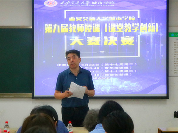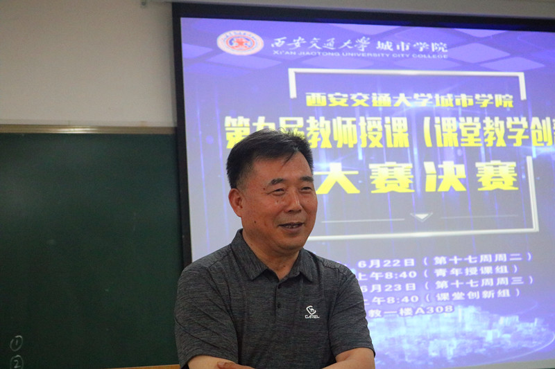 第九届教师授课(课堂教学创新)大赛决赛分别于6月22日、6月23日上午在教1楼A308教室举行。国家级教学名师马知恩教授、校督导组部分专家、学院院长陈光德教授、副院长朱旭教授、教学中心主任陈晓南教授、教发中心主任杨振坤教授及副主任史冬梅副教授和相关系(教学部)主任担任评审专家。全体参赛选手、观摩教师等80多名教师参加了本次活动。决赛会场分别由朱旭副院长和陈晓南主任主持。