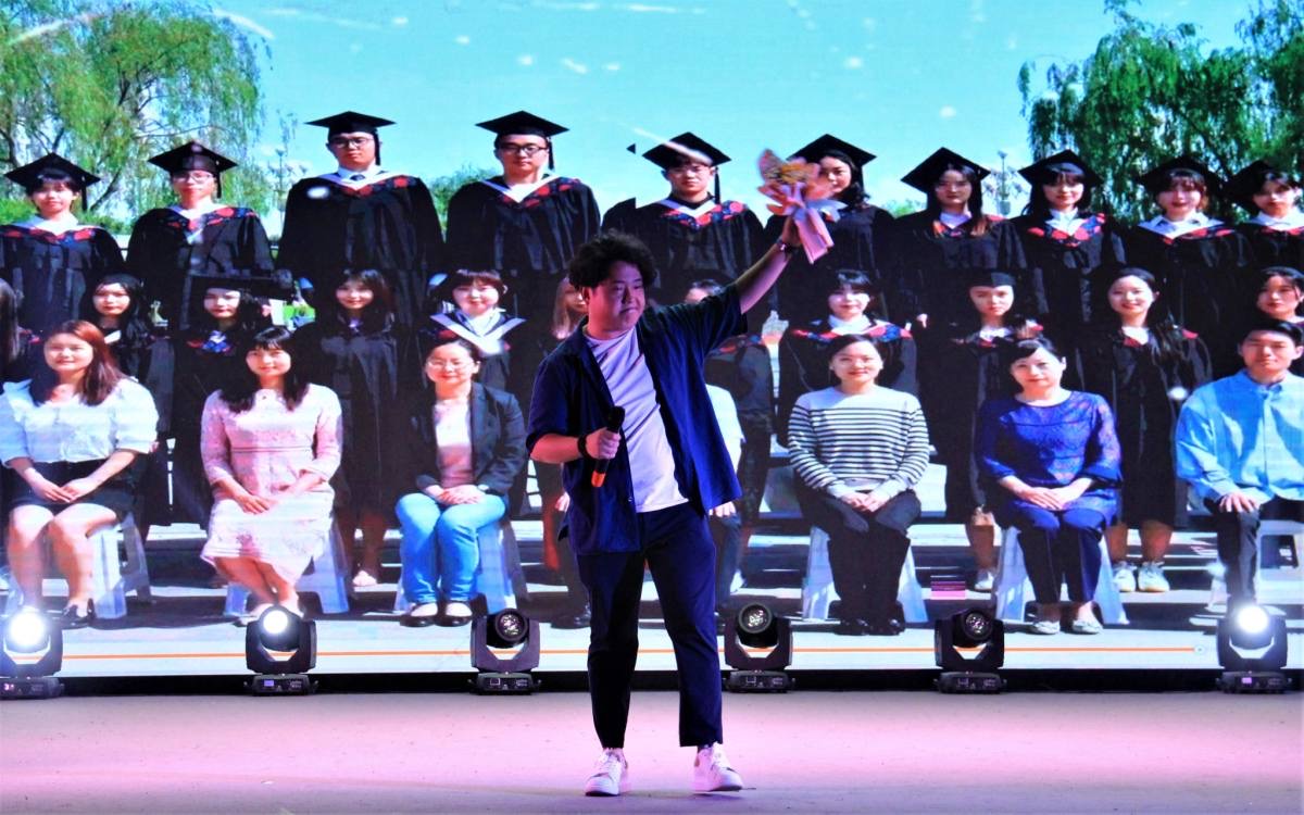 除了视听盛宴,毕业晚会还为2021届毕业生送上神秘礼物。十余位来自各系的教师代表惊喜现身晚会现场,为毕业生们送上最美好的祝福。陈光德院长更是用一首原创诗篇深情寄语,“期待再次感受你青春的活力,再听你讲讲那些青春成长的故事,我在城市学院等你,等着你!”