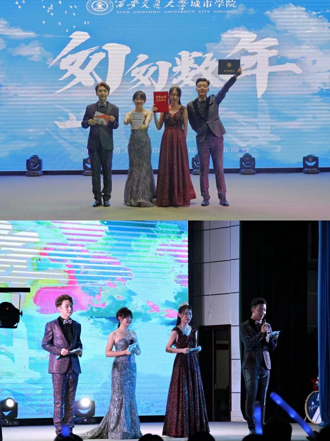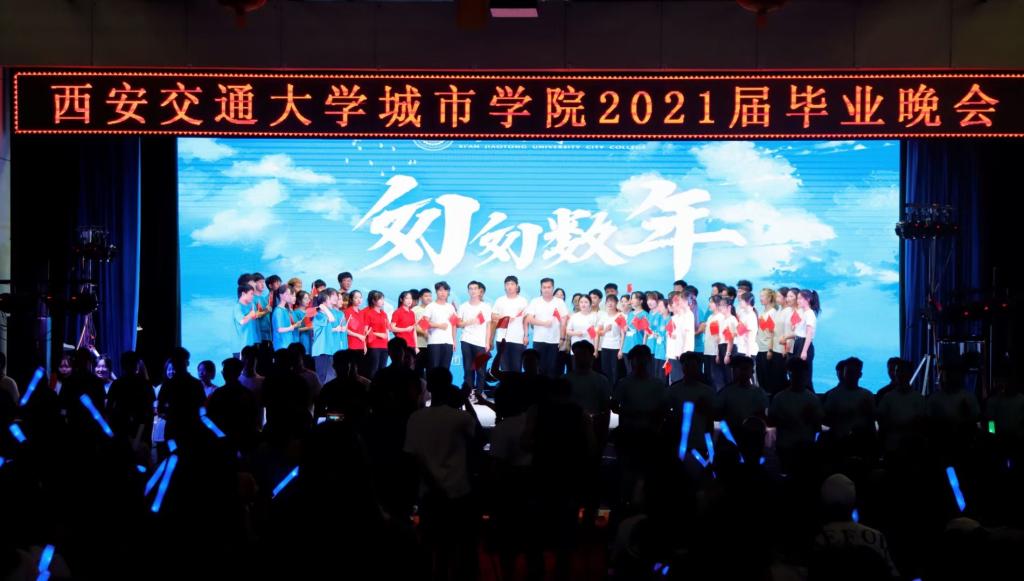 匆匆数年,又至今夏。为欢送2021届毕业生,表达对毕业生的美好祝福和殷勤期望,刻下属于2021届毕业生的青春烙印。西安交大城市学院于6月28日晚在大学生活动中心举办2021届毕业晚会。西安交通大学城市学院院长陈光德、党委书记张爱萍、副院长张敬朝、副院长朱旭、副院长岳华海、院长助理徐君陶、纪委书记朱普社、工会主席冀祥以及各系(教学部)、中心(部)负责人、2021届毕业生代表、教师代表以及全体学工人员共同参加晚会。本次晚会由毕业生贾一哲、张子辰、周瑱及2019级学生路凡主持。