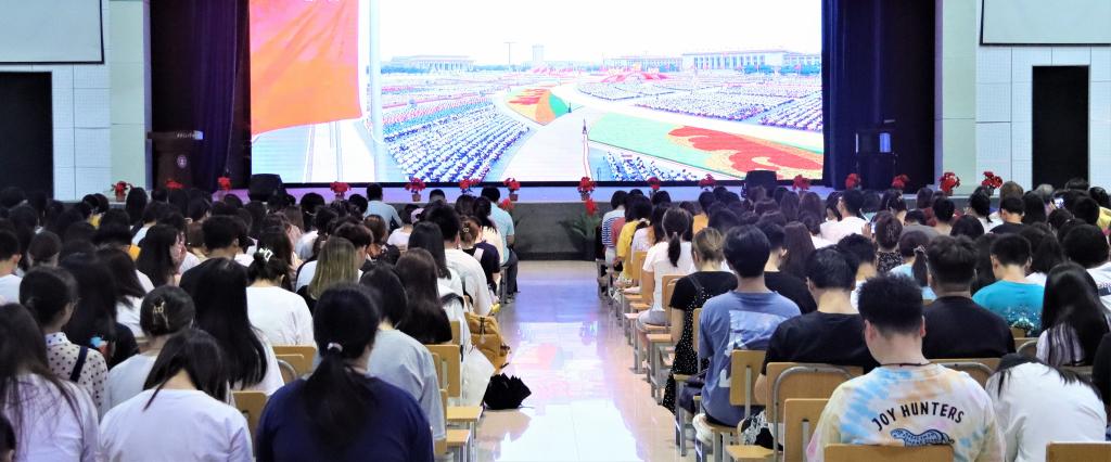 7月1日上午,庆祝中国共产党成立100周年大会在北京天安门广场隆重举行。中共中央总书记、国家主席、中央军委主席习近平发表重要讲话。西安交通大学城市学院把收看庆祝中国共产党成立100周年大会实况作为对全院党员干部、师生员工进行党的历史、党的知识和时事政治教育的重要课堂,作为党史学习教育的重要内容,组织师生员工通过多种形式观看大会直播,认真聆听习近平总书记在大会上的重要讲话。学院组织中层以上领导干部、教工党支部书记在行政楼504会议室集体观看直播;学生服务中心组织学生党员、积极分子、全院团学干部以及全体学工人员在大学生活动中心一同观看直播;各党支部、各部门组织党员、团员、群众观看直播,一同感受一百载峥嵘岁月,一百载日月兼程,一百载的辉煌成就。据悉,中国青年网也报道了学院青年团员观看庆祝中国共产党成立100周年大会直播情况。