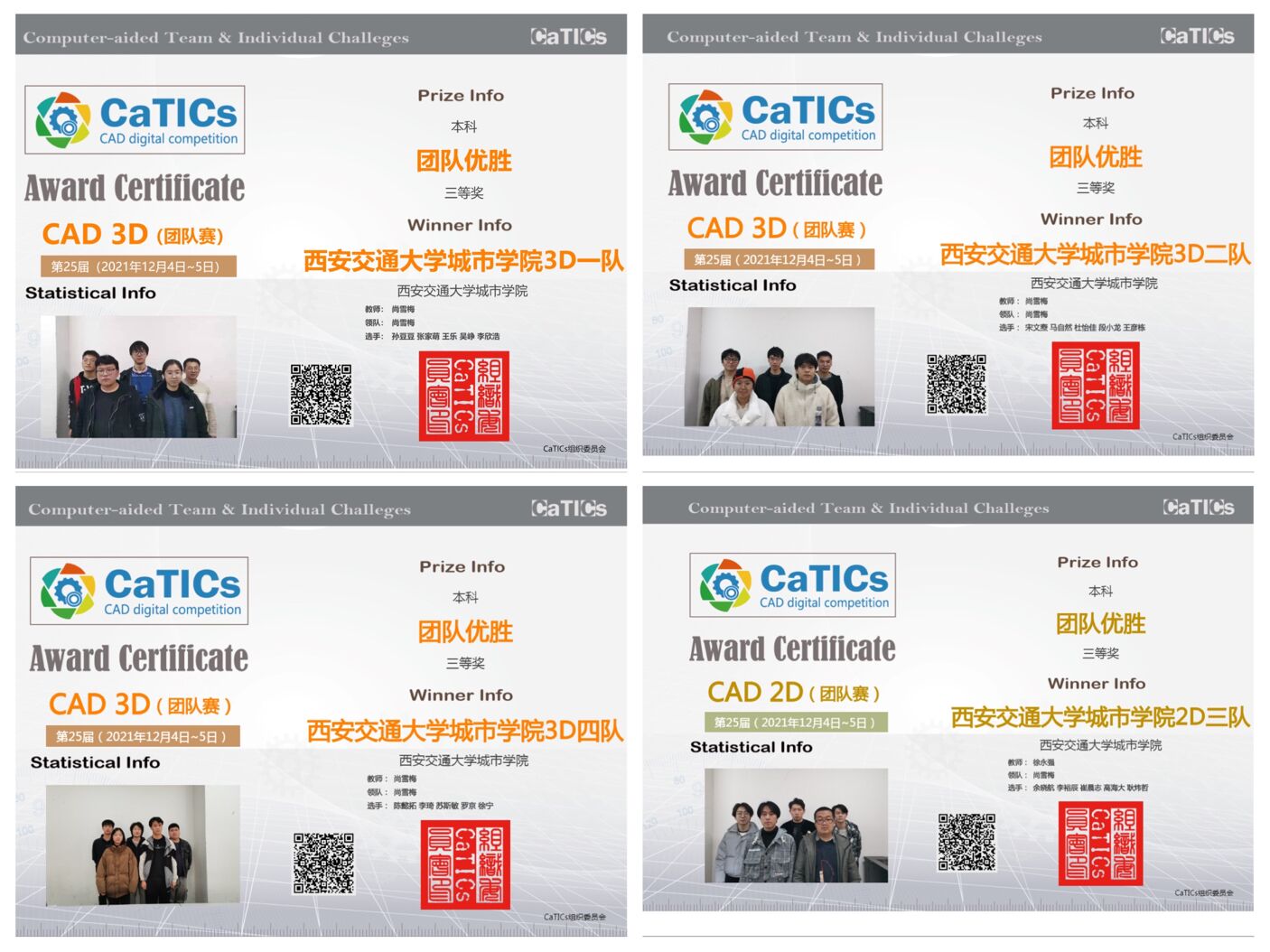 12月4日-5日,西安交大城市学院40名学生在CAD/CAM实训室参加了第25届二维、三维CaTICs网络竞赛。机械工程系尚雪梅老师负责组织和指导。比赛时同学们争分夺秒,奋力拼搏。最终,西安交大城市学院荣获二等奖4项,三等奖4项。