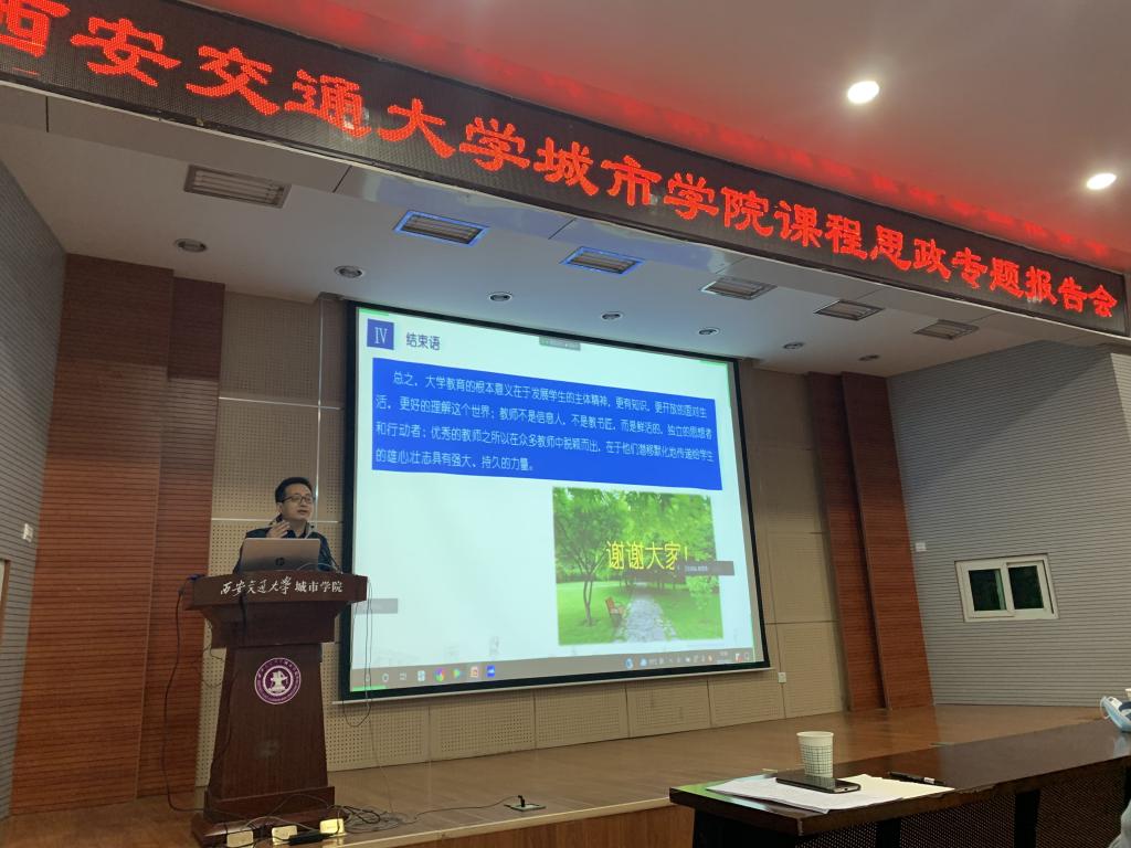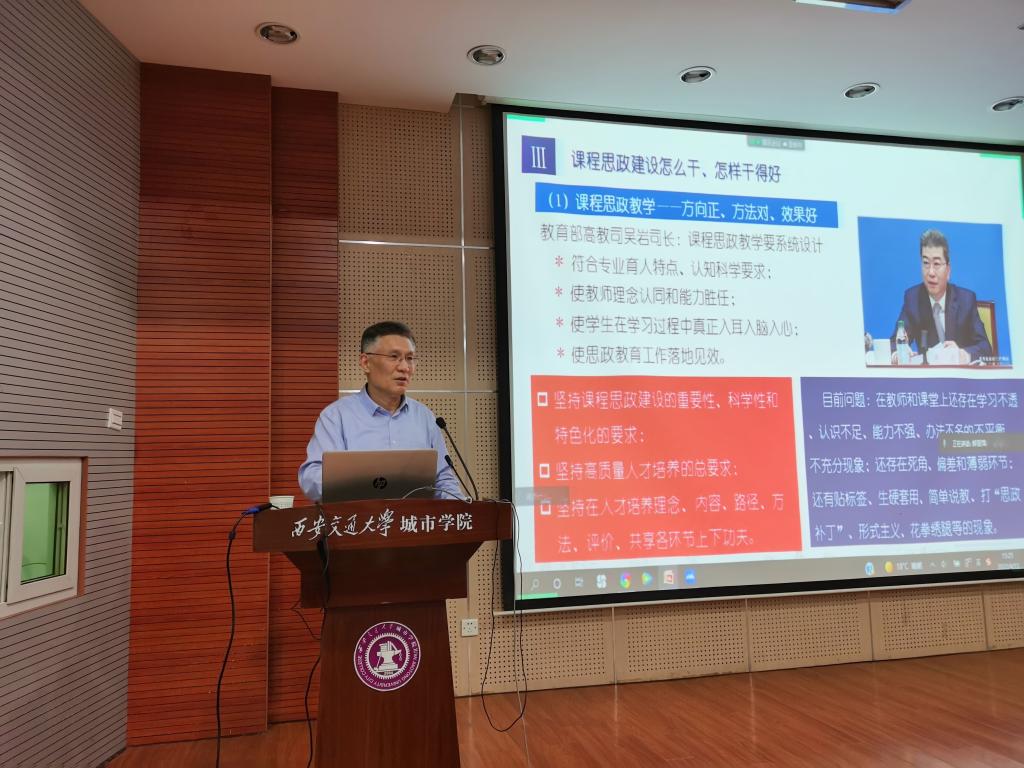 为进一步推动课程思政在学院高质量发展,西安交通大学城市学院教师发展中心于4月13日下午召开课程思政专题报告会。会议由副院长朱旭教授主持,西安交通大学国家级教学名师王小力教授作了主题报告,思政部主任梁军教授发表了讲话。教师发展中心主任史冬梅、数学教学部主任张世梅、计算机系副主任许大炜及40余位后备名师教师代表在教一楼F100参会,各系部通过腾讯会议在线上参会。