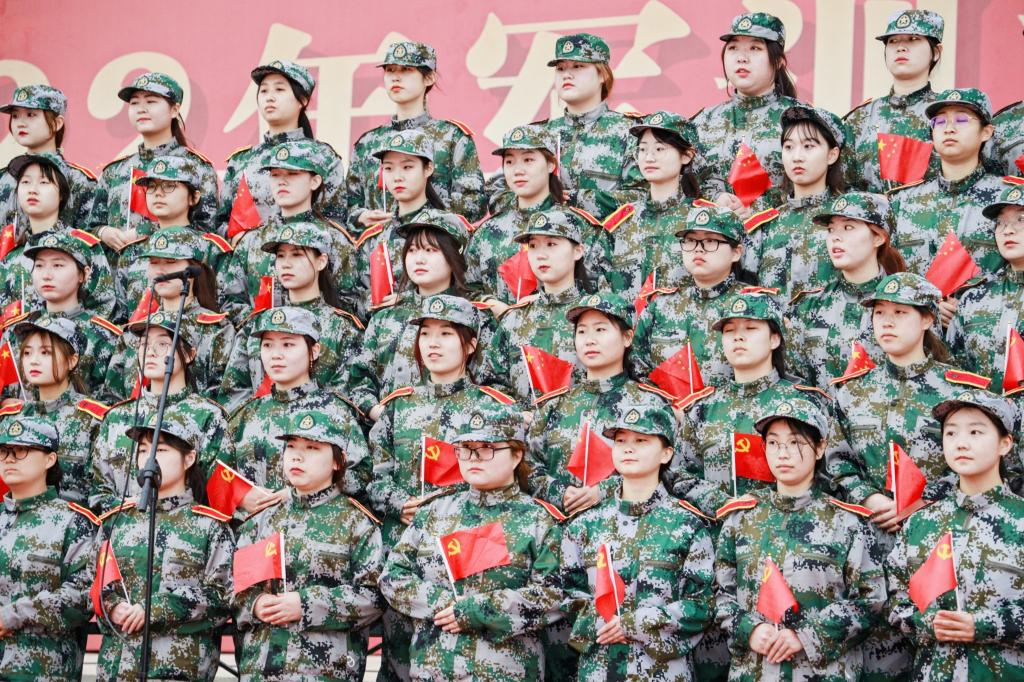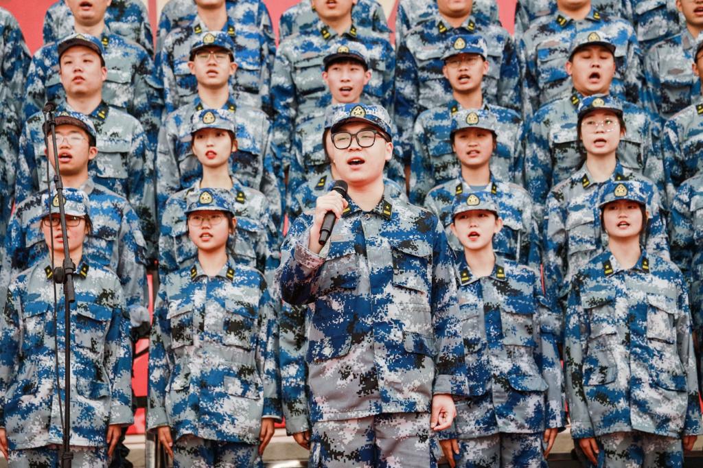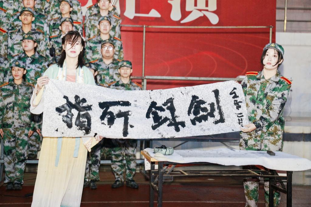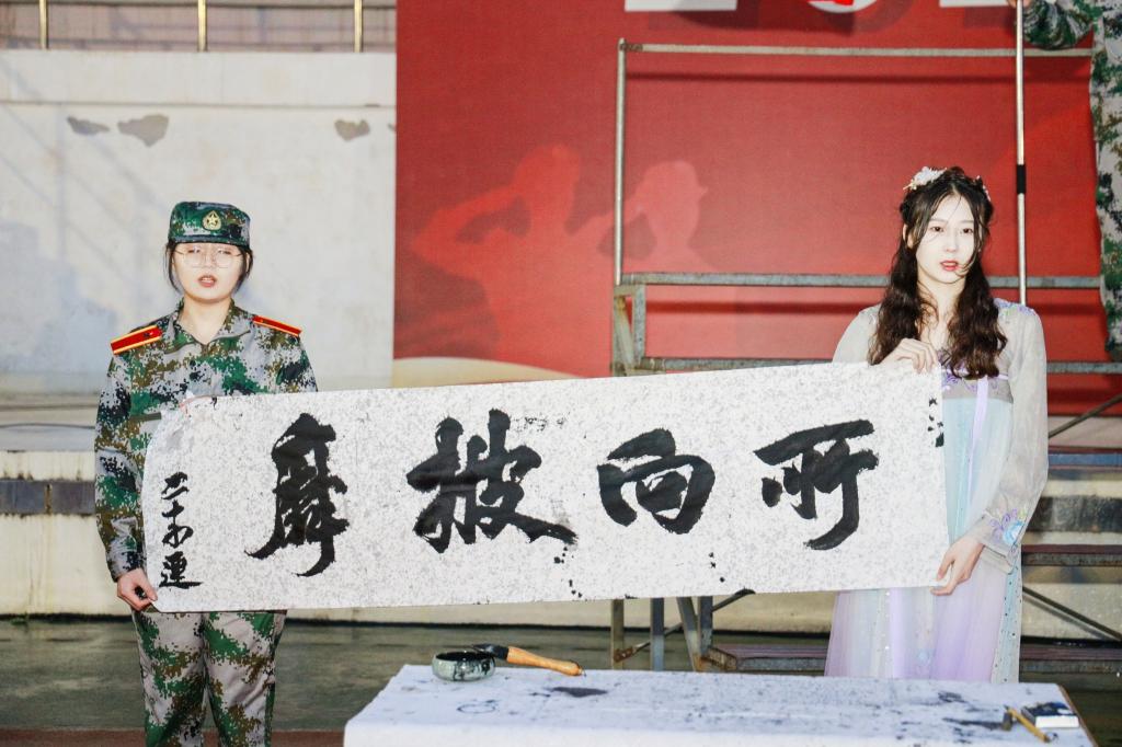 12支参赛连队秩序井然,精神抖擞,依次上场。伴随着六营二十八连的《中国人民解放军军歌》,文艺汇演也正式拉开帷幕。少年富则国富,少年强则国强,二营一队的《中国少年说》让人鼓舞振奋。四营十七连目光灼灼,巾帼不让须眉,《唱支山歌给党听》唱出了她们最赤诚的热情。风在吼,马在叫,黄河在咆哮……四营二十连等五个连队分别用自己的满腔热血唱响《黄河大合唱》,歌颂中华民族源远流长的光荣历史和中国人民坚强不屈的斗争精神。伴随着五营一队等4个连队带来的《当那一天来临》,感受到了浓烈的家国情怀,激流勇进,勇于担当!《我相信》以青春的赤诚热血向新时代宣誓,五营一队展现的是爱党爱国爱校的炽热情怀。