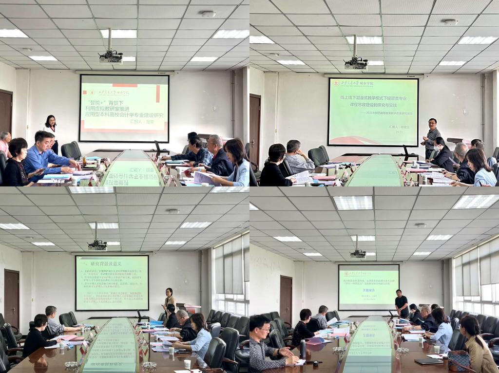 专家组对学院承担的2021年陕西省高等教育教学改革研究的四个项目的开题工作进行了评审,研究项目分别为:“智能+”背景下利用虚拟教研室推进应用型本科高校会计学专业建设研究、线上线下混合式教学模式下经管类专业课程思政建设的研究与实践、产教融合视阈下本科老年护理专业“医养结合”应用型人才培养研究与实践、面向制造业转型升级应用型本科机械大类专业群“四位一体四层次”实践教学体系构建与实践。各项目负责人分别就各自项目的研究意义与背景、研究内容方法、项目的组织分工、研究进度、预期成果等工作做了详细汇报。