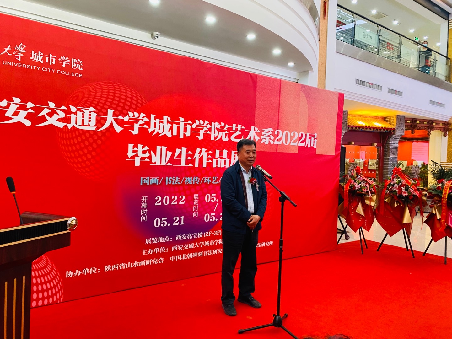 5月21日上午,由西安交通大学城市学院主办,陕西省山水画研究会、中国北朝碑刻书法研究中心和陕西近代书法研究所协办的“西安交通大学城市学院艺术系2022届毕业生作品展”在西安亮宝楼艺术博物馆举行开幕仪式。