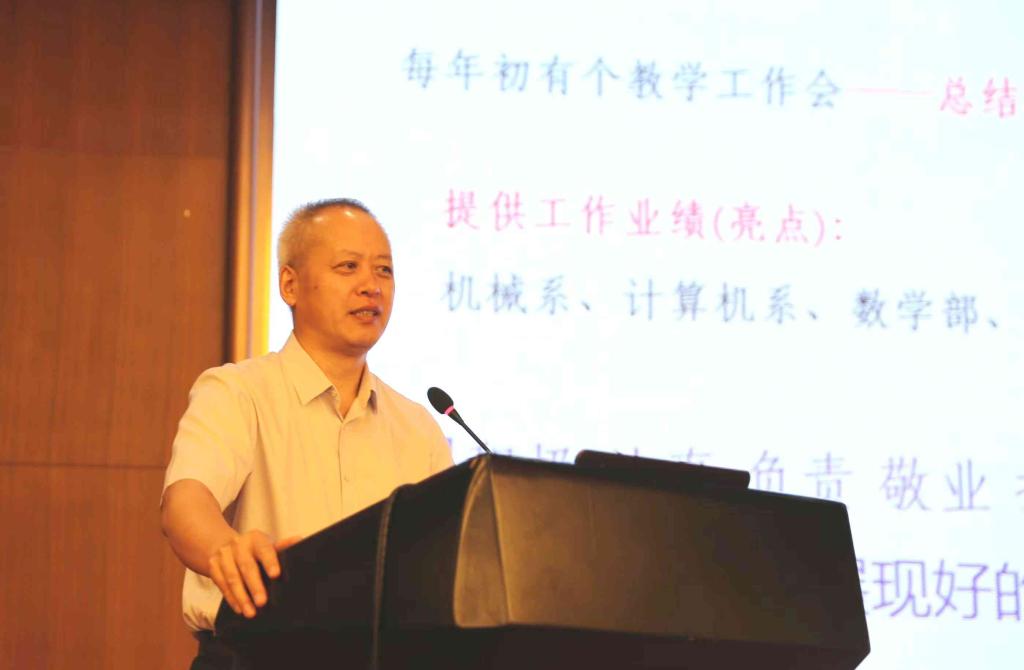 朱旭副院长报告的主题是《发挥院系二级管理效能 激发全体教师积极性》,介绍了上学年学院总体教学情况、青年教师培养、科研教研项目申报、学生个性化培养等四个方面,分析了教风建设中存在的主要问题。提出改进举措,要进一步厘清学院、系(教学部)主要职责和任务,有效落实二级管理制度,加强系(教学部)业绩数据收集与质量把控,以过程教学为抓手,促进课堂教学,形成教风促学风的良好势头。通过开展教学竞赛,营造教师教学水平比学赶超的良好氛围。加强应用创新、合作实践,提升学生创新思维和应用能力,进一步提高学院教育教学水平和人才培养质量。