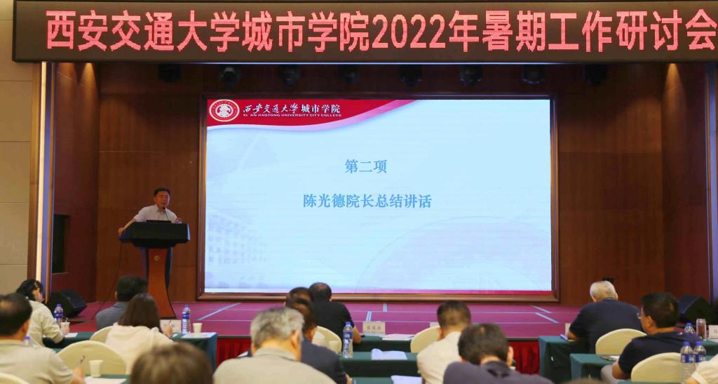 7月17日-18日,西安交通大学城市学院举行2022年暑期工作研讨会。陈光德院长、张爱萍书记、朱旭副院长分别作了主题发言。学院领导,教授会主席,督导组组长,各系(教学部)、中心(部)主任、副主任,各党支部书记,各学生工作负责人参加会议。