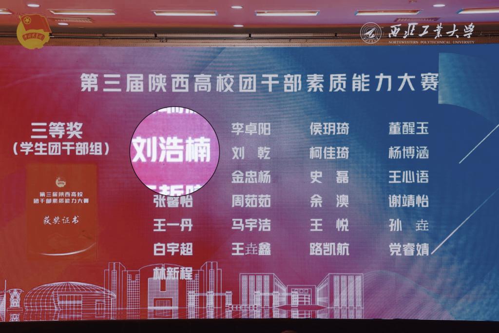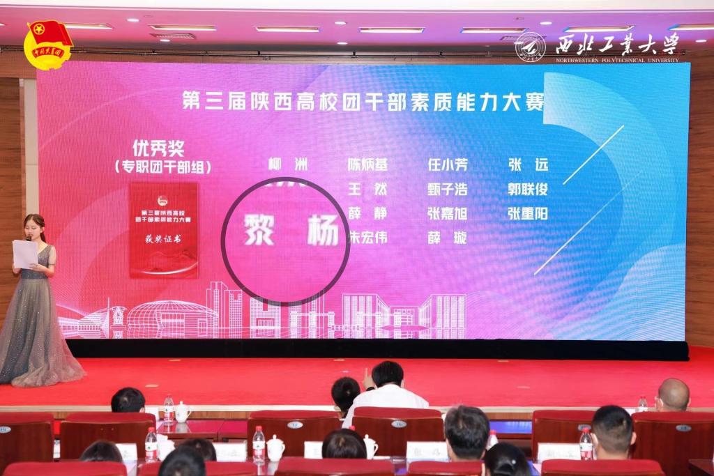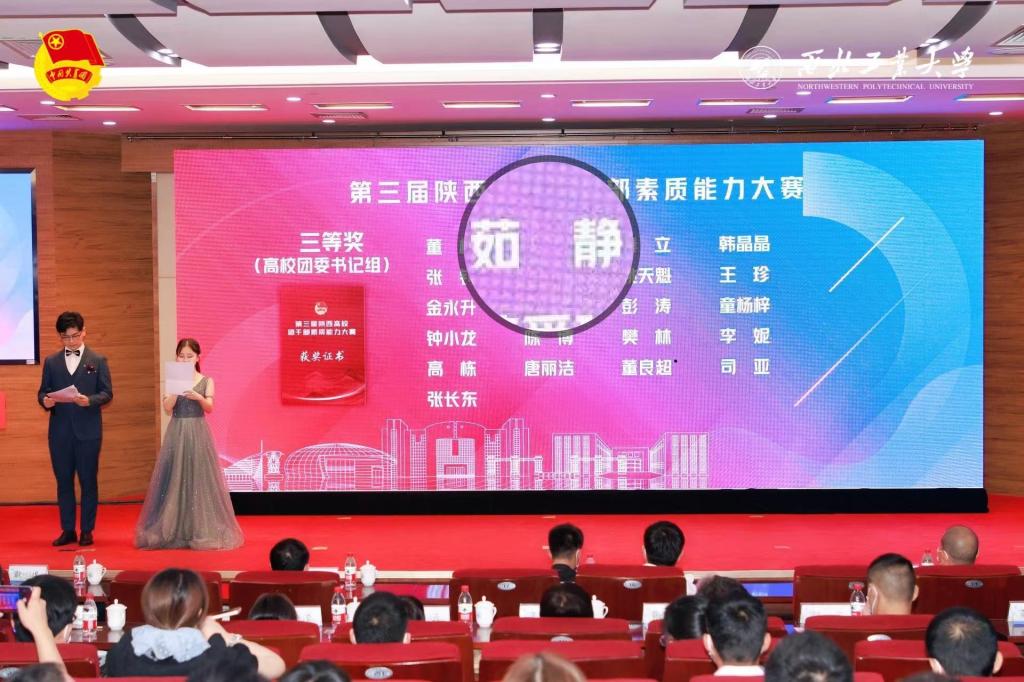 近日,第三届陕西高校团干部素质能力大赛决赛暨颁奖仪式在西北工业大学(友谊校区)举办。由共青团陕西省委、中共陕西省教育工委、中共陕西省委党史研究室主办的第三届陕西高校团干部素质能力大赛圆满结束。我校团委书记茹静荣获高校团委书记组三等奖,校团委专职团干部黎杨荣获专职团干部组优秀奖,机械工程系刘浩楠同学荣获学生团干部组三等奖,电气与信息工程系侯梦昕同学荣获学生团干部组优秀奖。