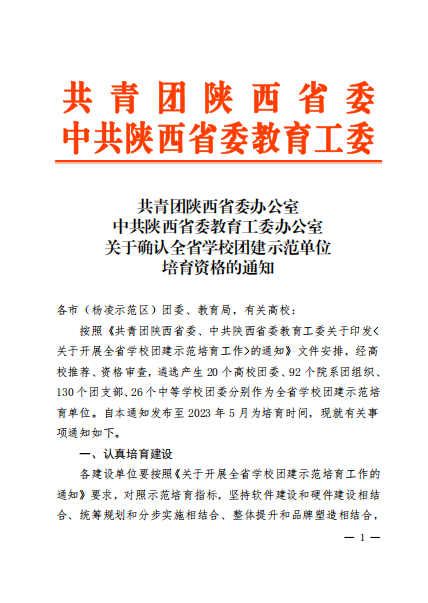据悉,按照《共青团陕西委、中共陕西省委教育工委关于印发〈关于开展全省学校团建示范培育工作〉的通知》文件安排,经高校推荐、资格审查,遴选产生20个高校团委、92个院系团组织、130个团支部分别作为全省学校团建示范培育单位,培育时间为2022年7月至2023年5月。