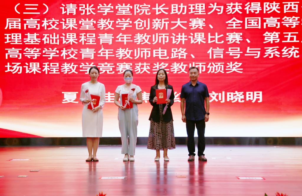 9月13日下午,西安交通大学城市学院在教二报告厅召开2022年庆祝教师节暨表彰大会,表彰一年来在教学、科研、管理和服务岗位做出突出贡献的优秀教职工和集体。学院领导、各系(教学部)、中心(部)主任、副主任,2021年9月后入职的新教职工,受表彰人员参加会议。党委书记张爱萍主持会议。