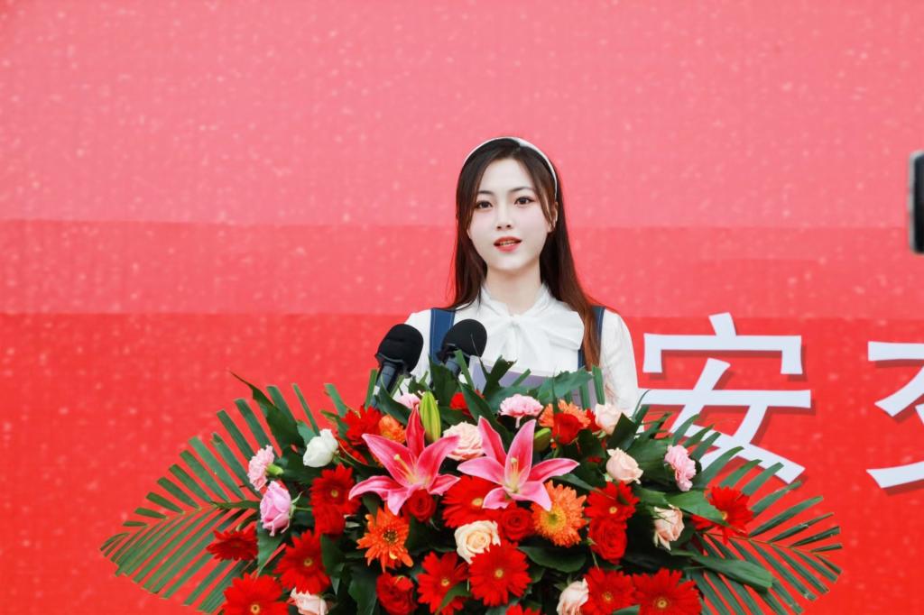 新生家长代表丁涛女士发表了深情寄语,她希望新生们一要坚守初心,保持热爱,做一个有理想、有目标的奋斗者;二要挑战自我,敢于突破,做一个勇拼搏、攀高峰的逐梦人;三要自律守信,做一个知敬畏、懂感恩的正直人。希望新生们朝着自己的理想努力前行!学业有成!