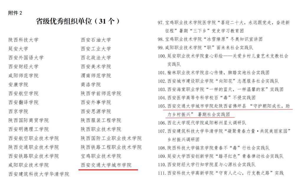 近日,共青团陕西省委公布了《中共陕西省委宣传部中共陕西省委文明办中共陕西省委教育工委等关于2022 年陕西省 大中专学生志愿者暑期文化科技卫生“三下乡”社会实践活动先进集体、先进个人的通报》,学院获得省级优秀组织单位荣誉称号,赴陕西省佛坪县“守护朝阳成长,助力乡村振兴”暑期社会实践团获省级优秀团队荣誉称号,崔佳楠获省级先进个人荣誉称号。