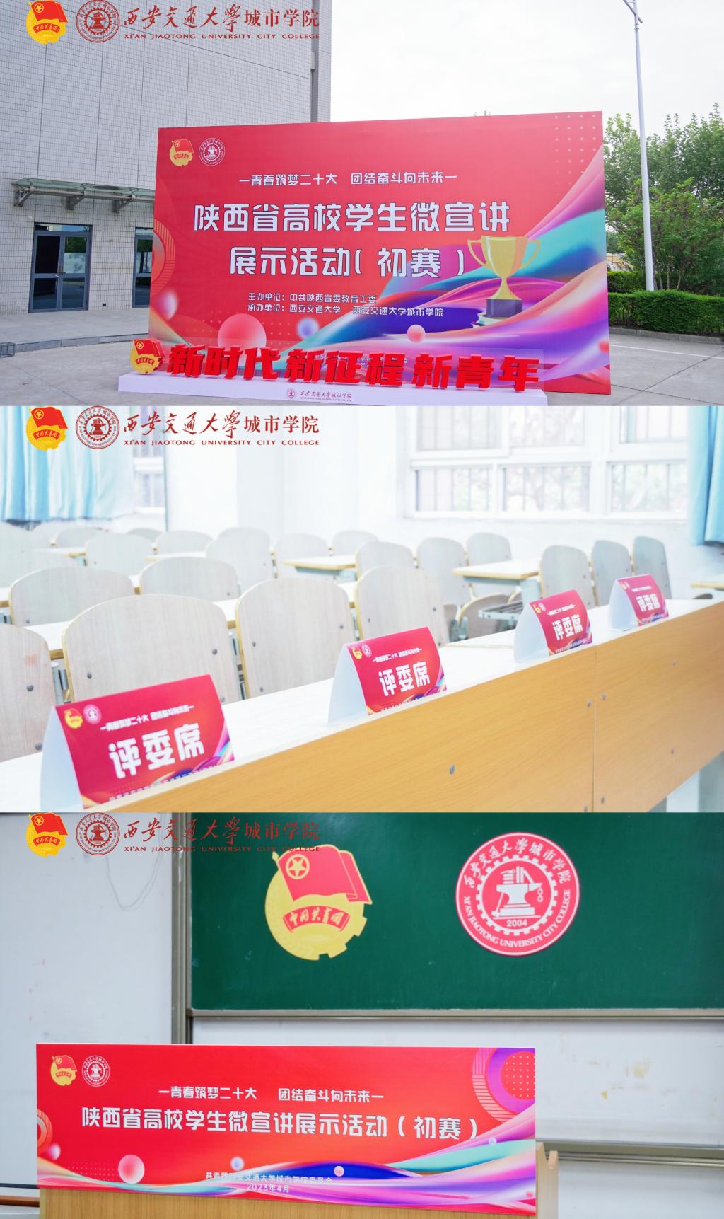 自接通知起,学院团委在积极动员同学广泛参与的同时精心策划、模拟设计,以饱满的热情和严谨认真的态度迎接本次比赛。筹备期间,设计并布置打卡展板、校园引导牌、赛场标语、选手休息室、评委老师候场室、茶歇饮品等。