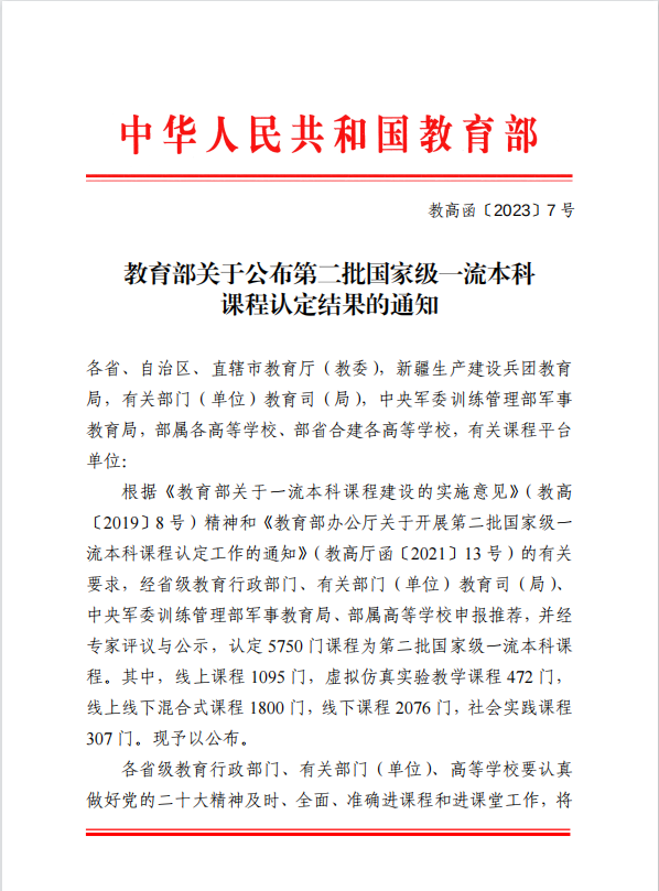 课程是人才培养的核心要素,课程质量直接决定人才的培养质量。一流本科课程建设是教育部贯彻落实习近平总书记关于教育的系列重要论述,全面落实全国教育大会、新时代全国高等学校本科教育工作会议要求,深化高等教育教学改革,提高教学质量的重要行动。近年来,学校坚持围绕教育部一流本科课程“双万计划”建设要求,在校级课程建设的基础上,建强一流本科课程,积极培育省级、国家级一流本科课程,定期开展一流本科课程建设专题讲座和培训,积极筹划、组织申报,精心修改、打磨申请材料;加大经费投入,完善激励机制,充分利用信息化、网络化技术以及多种网络教学平台,构建智慧教育教学新形态,推动现代信息技术与课程建设工作深度融合,多策并举推进一流本科课程建设工作。