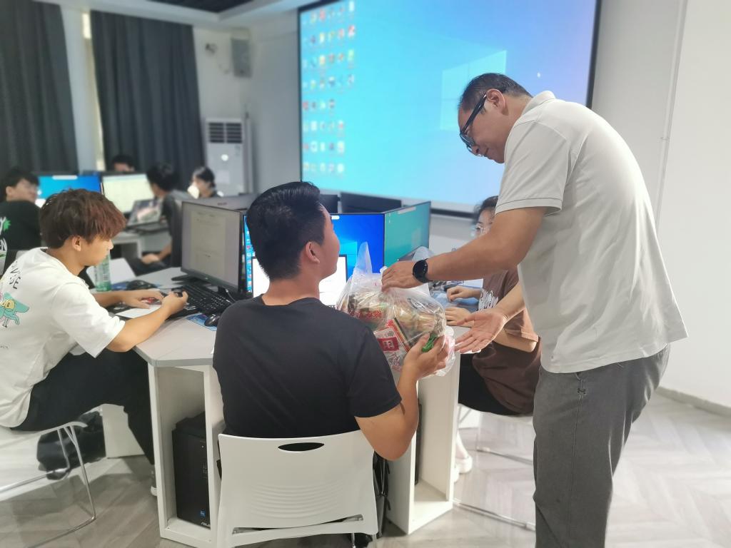 9月8日上午,学院党委书记张爱萍、副院长朱旭、学生服务中心主任辛红伟来到比赛现场看望并慰问参赛学生,鼓励学生以饱满的精神状态全身心投入比赛,发扬团队协作精神,勤于思考,坚持不懈,争取发挥最佳水平。