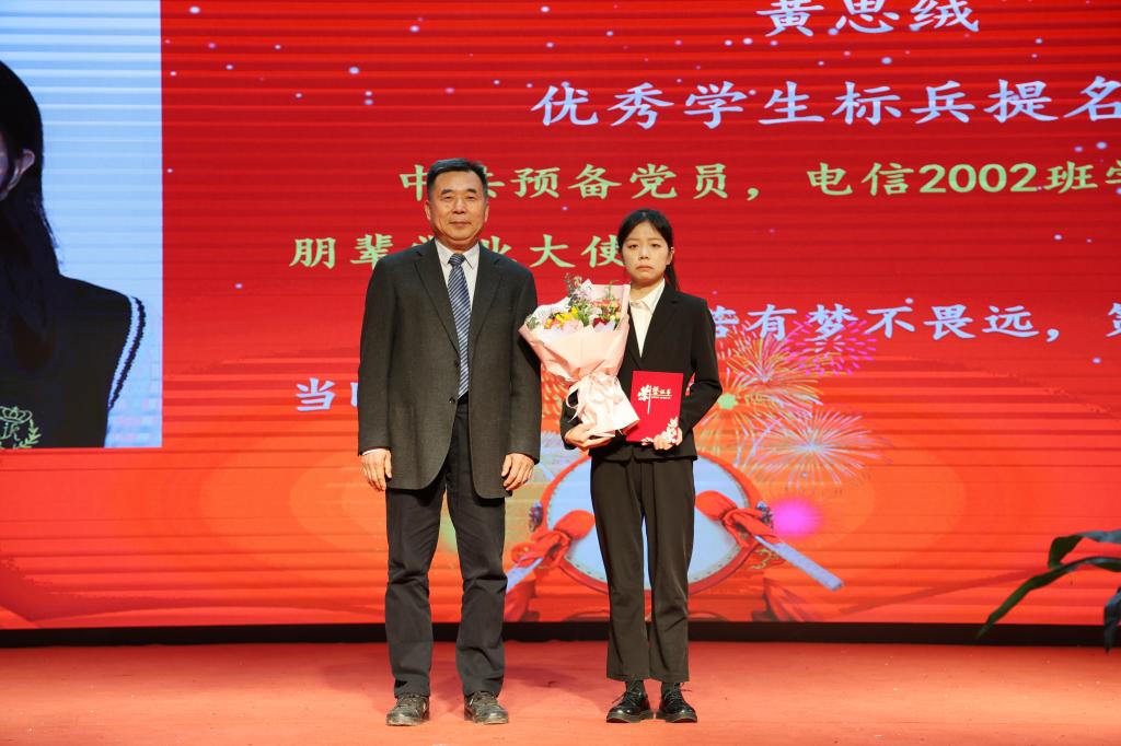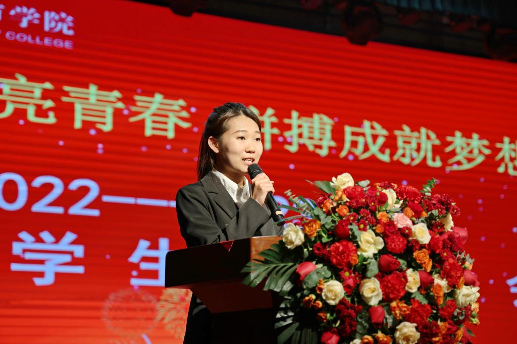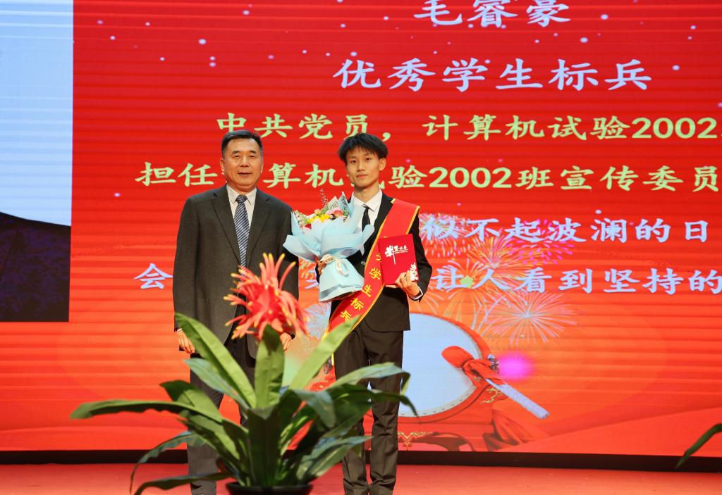 颁奖仪式后,优秀学生标兵获得者毛睿豪作为获奖学生代表发言。他讲述了自己制定目标并为之勤奋追逐的历程,鼓励同学们脚踏实地,不断进步,不断超越,敢于有梦、勇于追梦、勤于圆梦,在时代的巨浪中拼搏奋斗。