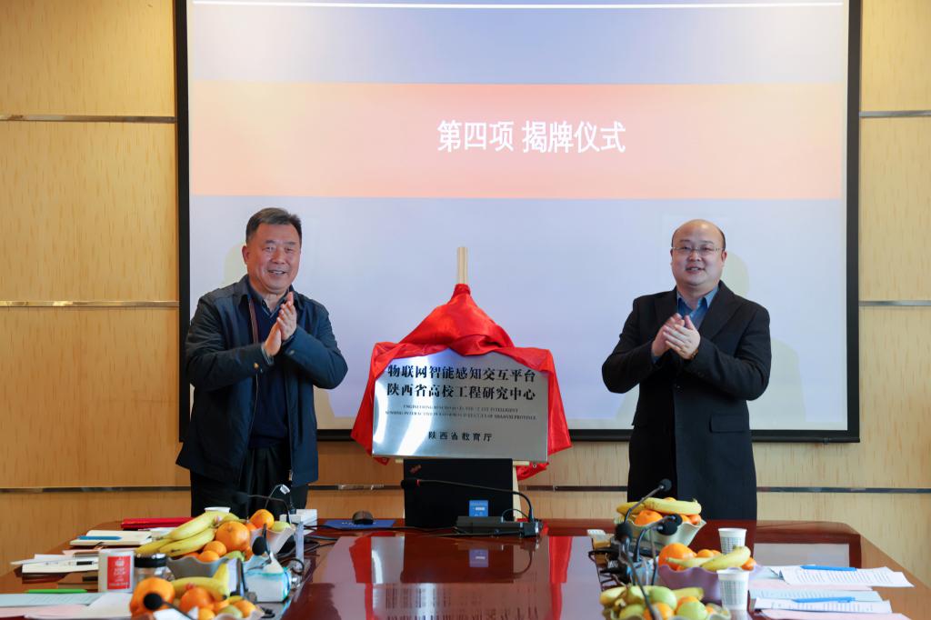 朱旭副校长首先介绍了与会来宾,代表学校对大家表示欢迎,并衷心感谢共建单位对工程研究中心申报的支持与帮助。科技处处长黄丽清宣读了工程研究中心启动建设等相关文件。陈光德校长为工程研究中心领导小组全体成员颁发了聘书,并与惠鹏博总经理共同为工程研究中心揭牌,正式启动了物联网智能感知交互平台陕西省高校工程研究中心的建设工作。