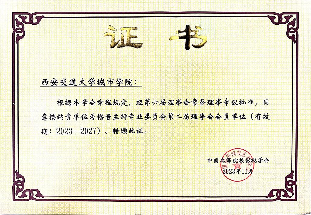 近日,中国高等院校影视学会播音与主持专业委员会2023年学术年会及齐越朗诵艺术节学术论坛在北京举办,经过严格的审核与遴选,西安交通大学城市学院获批成为该专业委员会会员单位。