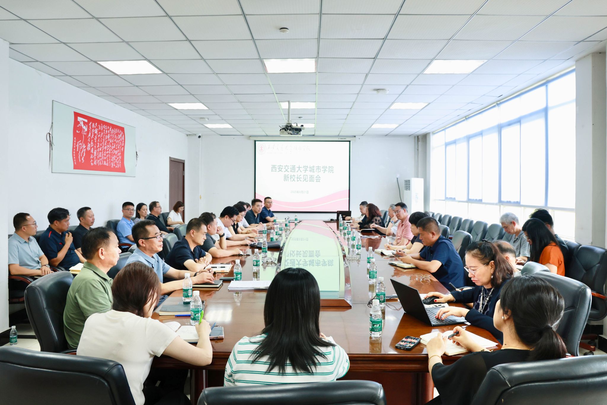 8月21日,西安交通大学城市学院召开新校长见面会。会议由学校董事会董事长王萍主持,学校领导、各职能部门、二级学院负责人参加会议。