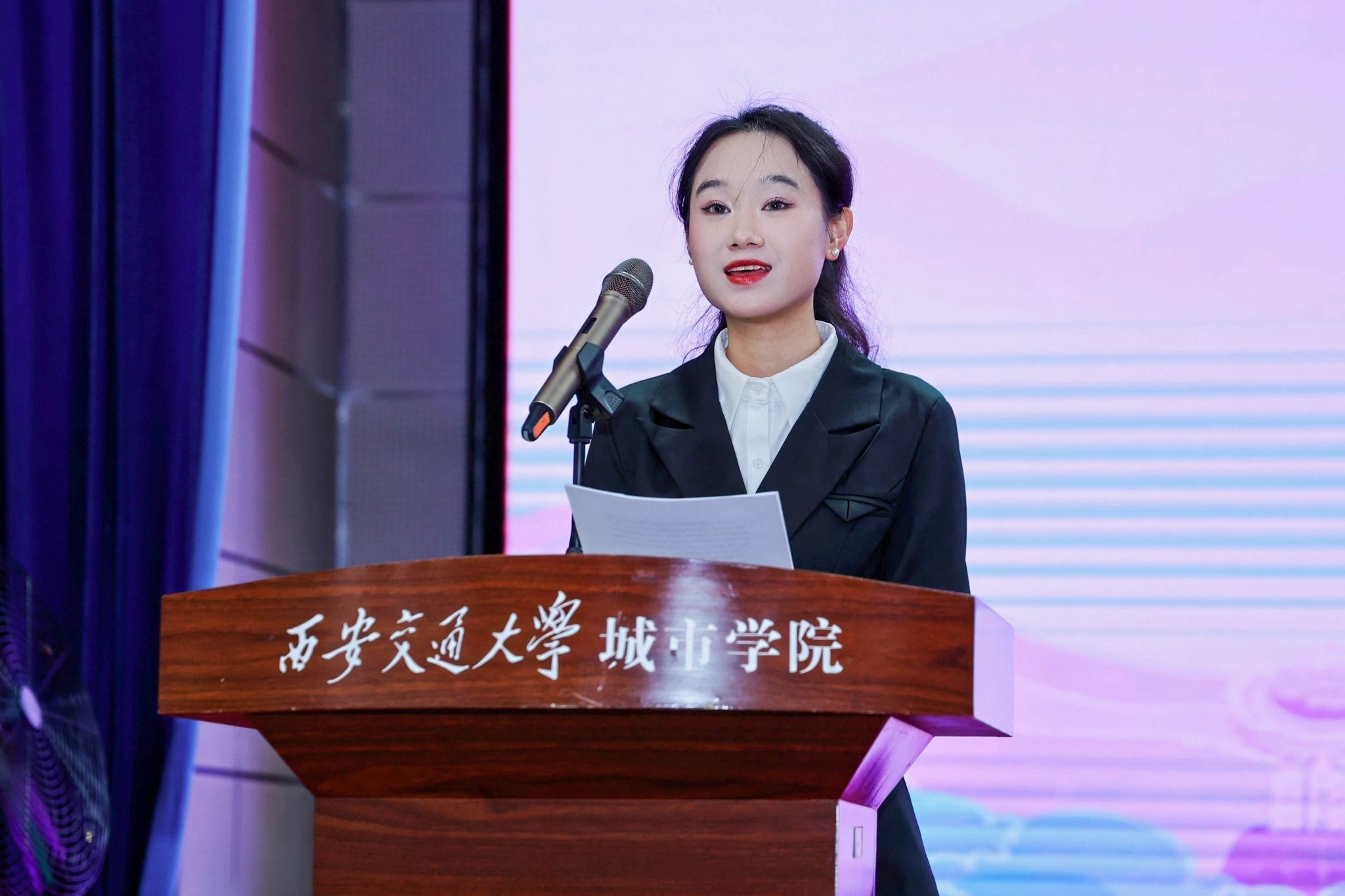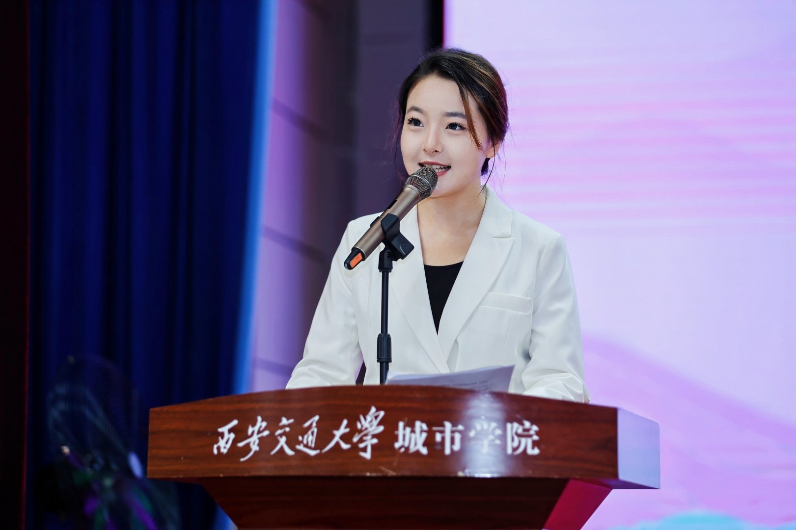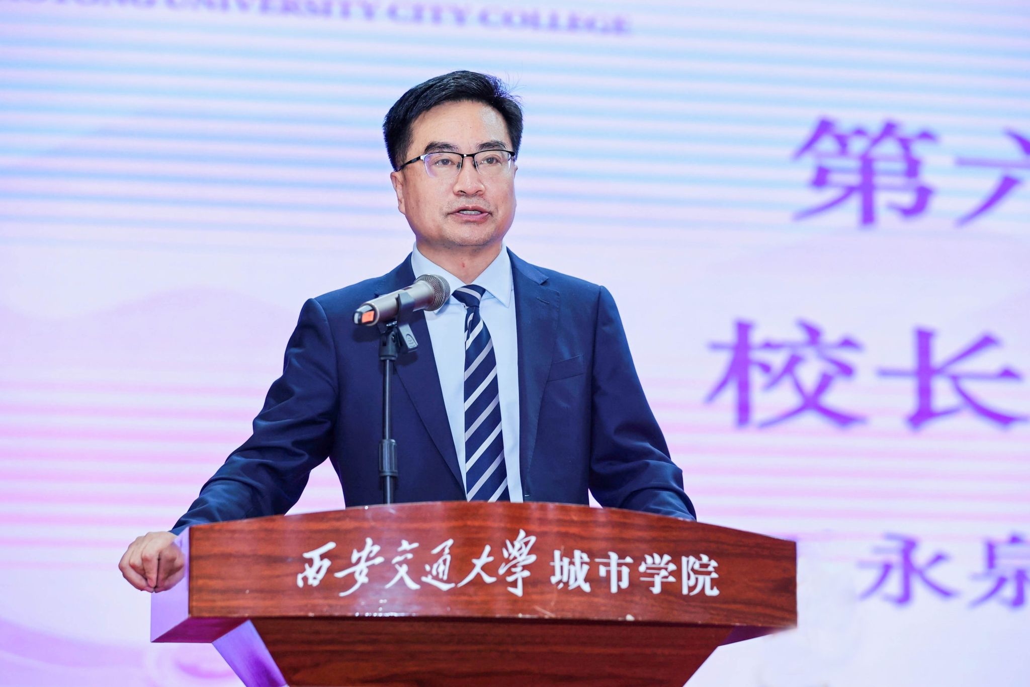 8月25日上午,西安交通大学城市学院在大学生活动中心举行2025级新生开学典礼。西安交通大学继续教育管理处处长高彦,西安交通大学城市学院校长王永泉,党委书记严红昌,中国人民解放军某部队副参谋长、少校、军训团团长杨毓海,副校长朱旭,副校长岳华海,校长助理、行政人事部部长姬志国,校长助理、财务处处长马江涛出席大会并在主席台就座。新生家长代表,各二级学院、部(处)负责人,各二级学院学生工作负责人、新生辅导员及全体2025级本科新生参会。大会由传媒与外国语学院播主2302班刘芝菡同学主持。