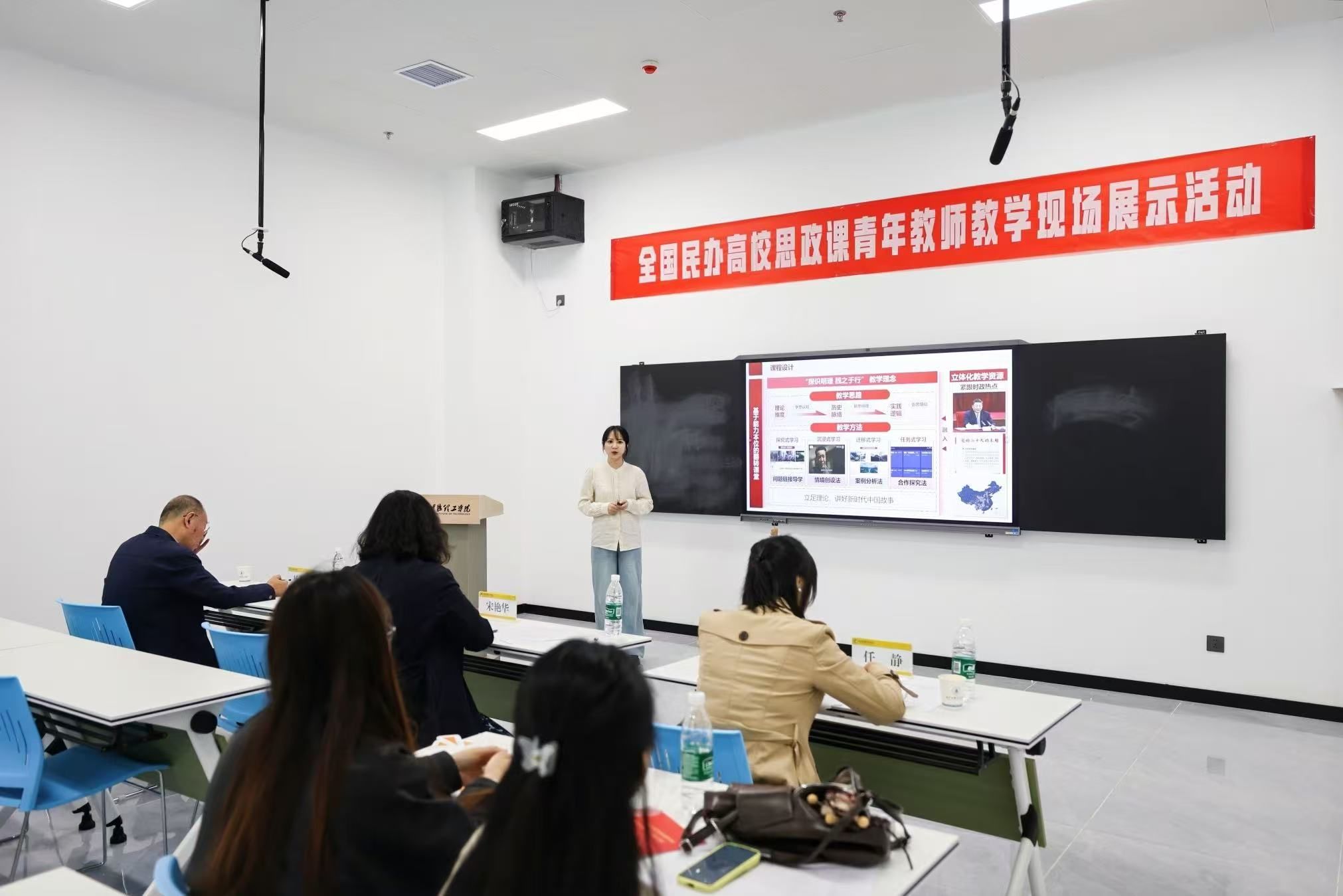 本次大赛旨在深入贯彻落实新时代学校思政课建设推进会和全国教育大会精神,进一步提升思政课教学质量,推动民办高校思政工作内涵式发展。备赛期间,学校组织专家团队对参赛教师进行多轮指导,从教学内容、方法创新到课件设计等方面提供全程精细化支持。比赛中,李丹丹紧扣思政课教学目标,结合社会热点与学生实际,灵活运用案例教学、互动讨论等多种教学方式,实现了理论传授、能力培养与价值引领的有机统一,充分展示了我校思政课教师优秀的专业素养和教学水平,赢得了评委和同行的一致好评。