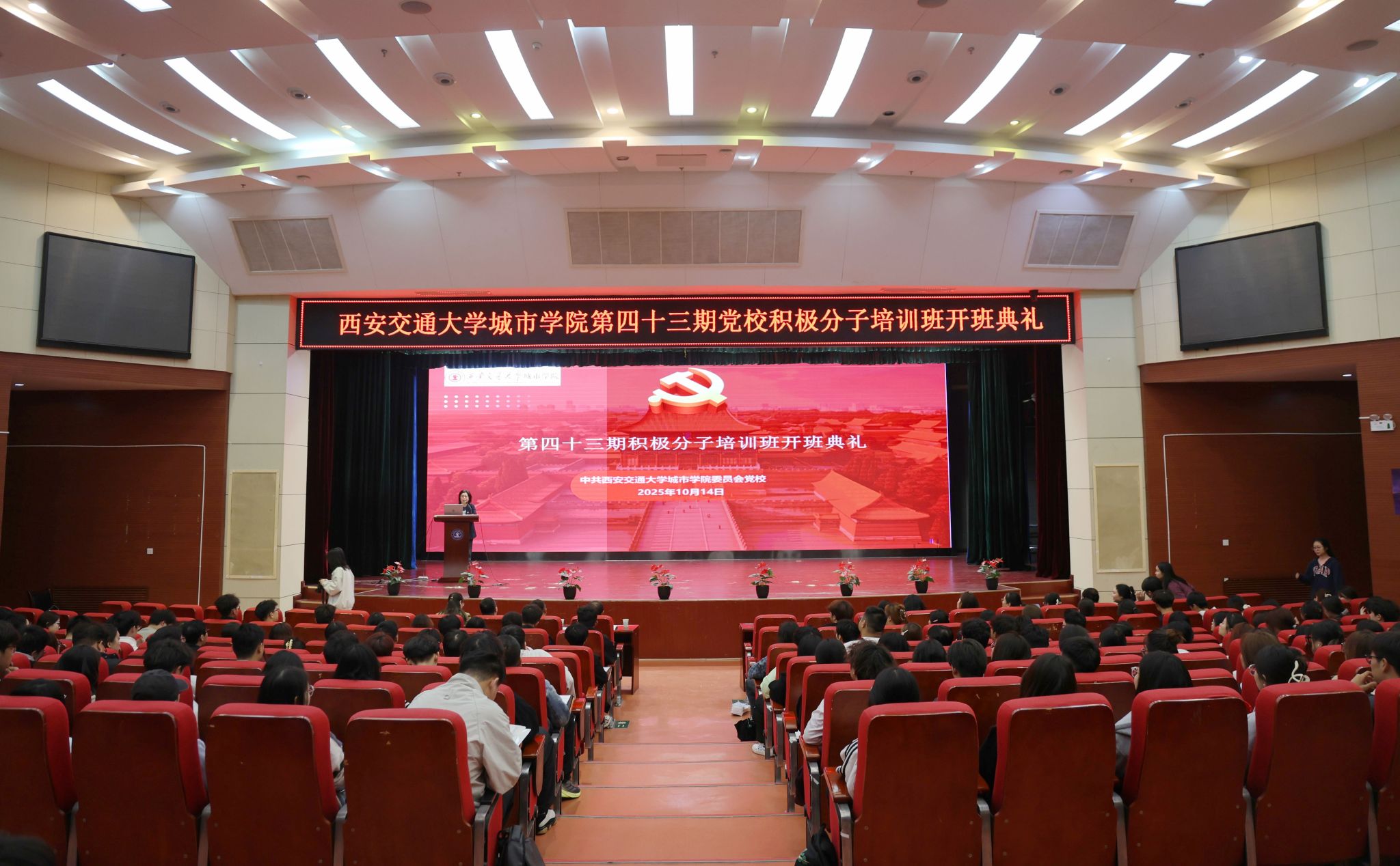 10月14日晚,西安交通大学城市学院第四十三期党校积极分子培训班开班典礼在教二报告厅举行。党委副书记、党校常务副校长陈书荣,党委工作部部长、党校副校长霍伟森,学生工作处处长、党校副校长辛红伟,党委工作部副部长米梅以及各二级学院学生党支部书记、支委参加活动。活动由学生工作处副处长姚敏主持。